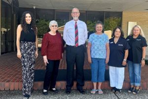 Pictured: L to R: Jenna Brett, TFB Relationship Manager; Harlene Curry, TFB Lending Assistant; Tim Bartram, HDISD Superintendent; Kelly Berry, HDISD Board President; Gina Clark, TFB BCM; Chantel Moor, TFB Business Banker